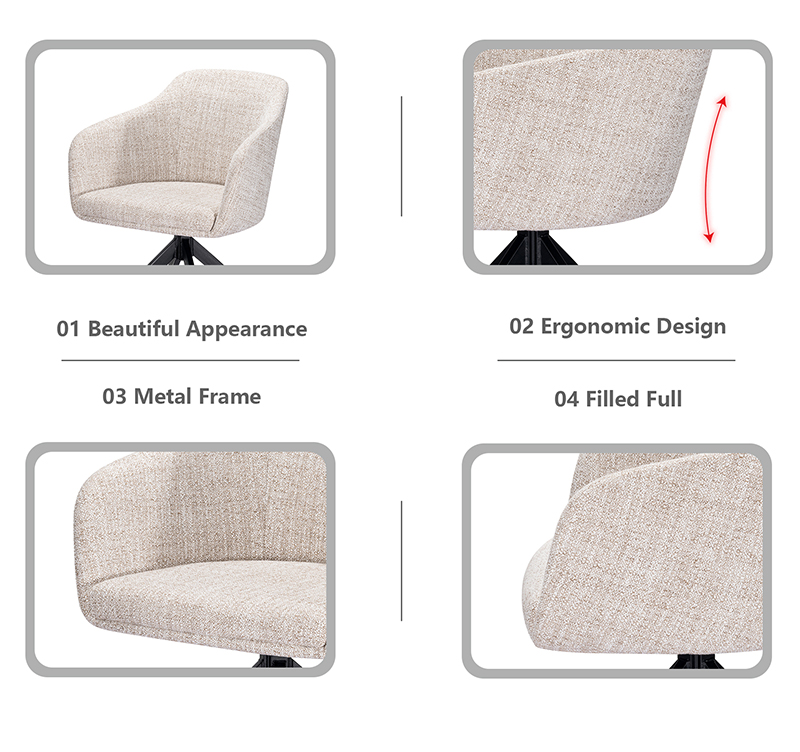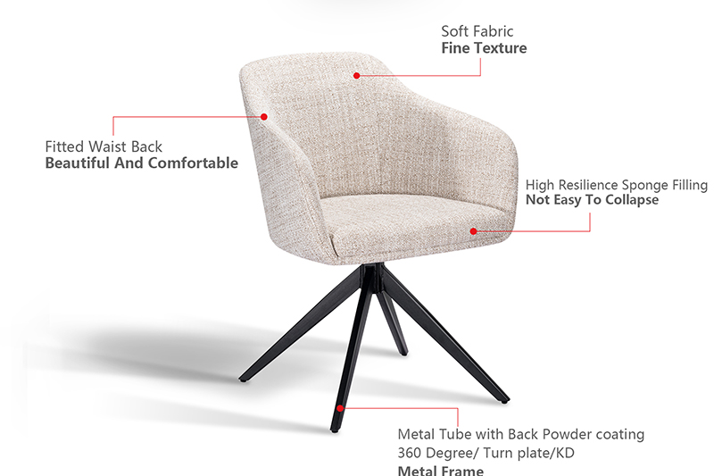 • Seat & Back: Fabric | Leg: Metal Tube with Back Powder coating 360 Degree/ Turn plate/KD