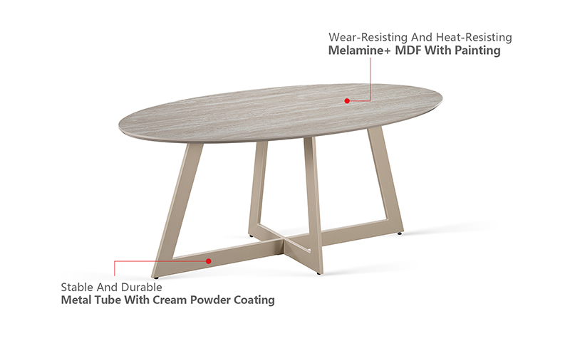 • Top: Melamine+ MDF with painting | Frame: Metal tube with cream powder coating