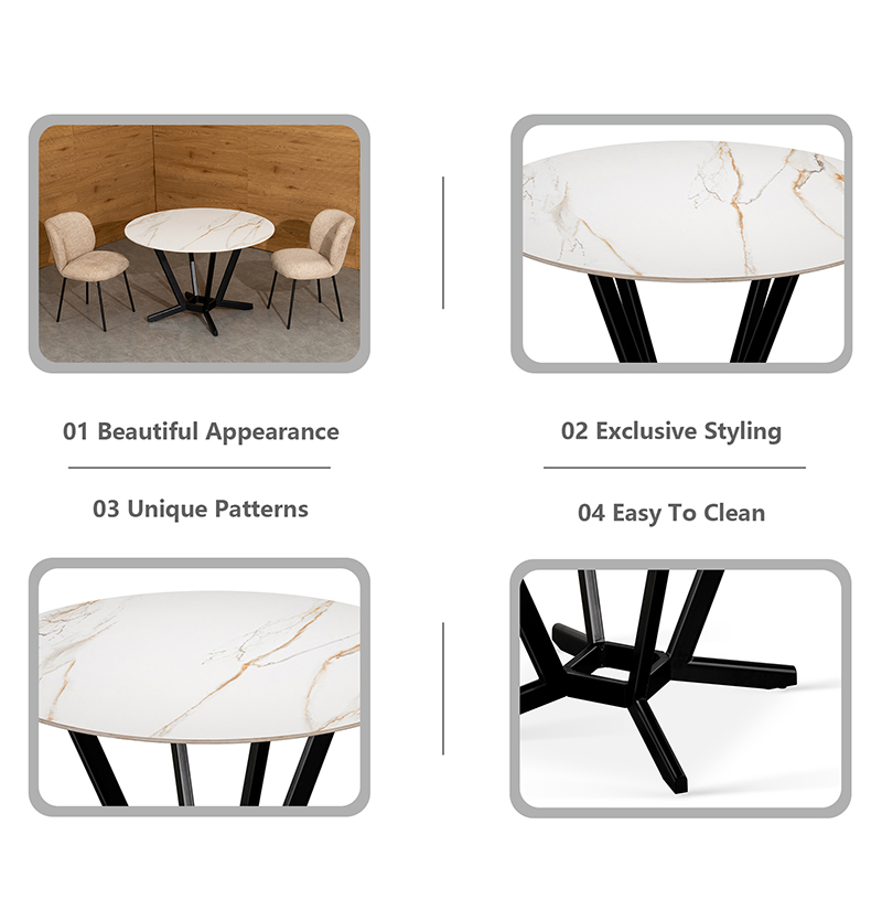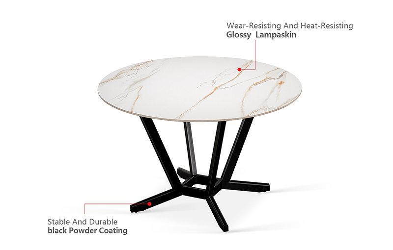 • Top: Sintered stone | Frame: D shape Metal tube with black powder coating